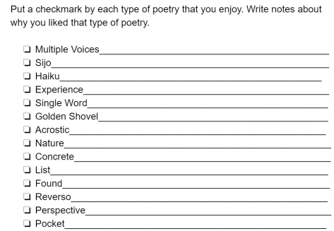 I put all of our videos into a Wakelet so anyone can enjoy our 3 days of poetry readings. We did have a power outage in the midst of the last day, so a few classes weren’t recorded as we scrambled to move forward with our schedule.