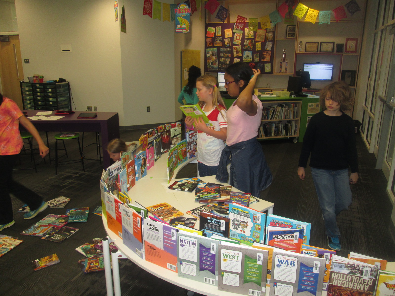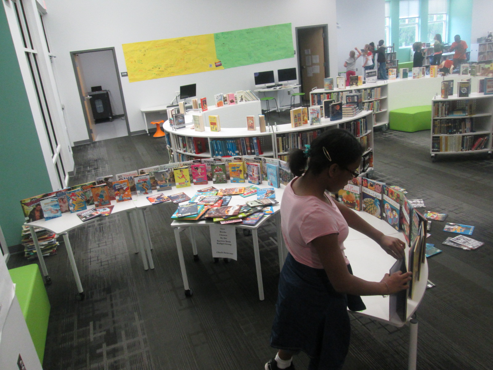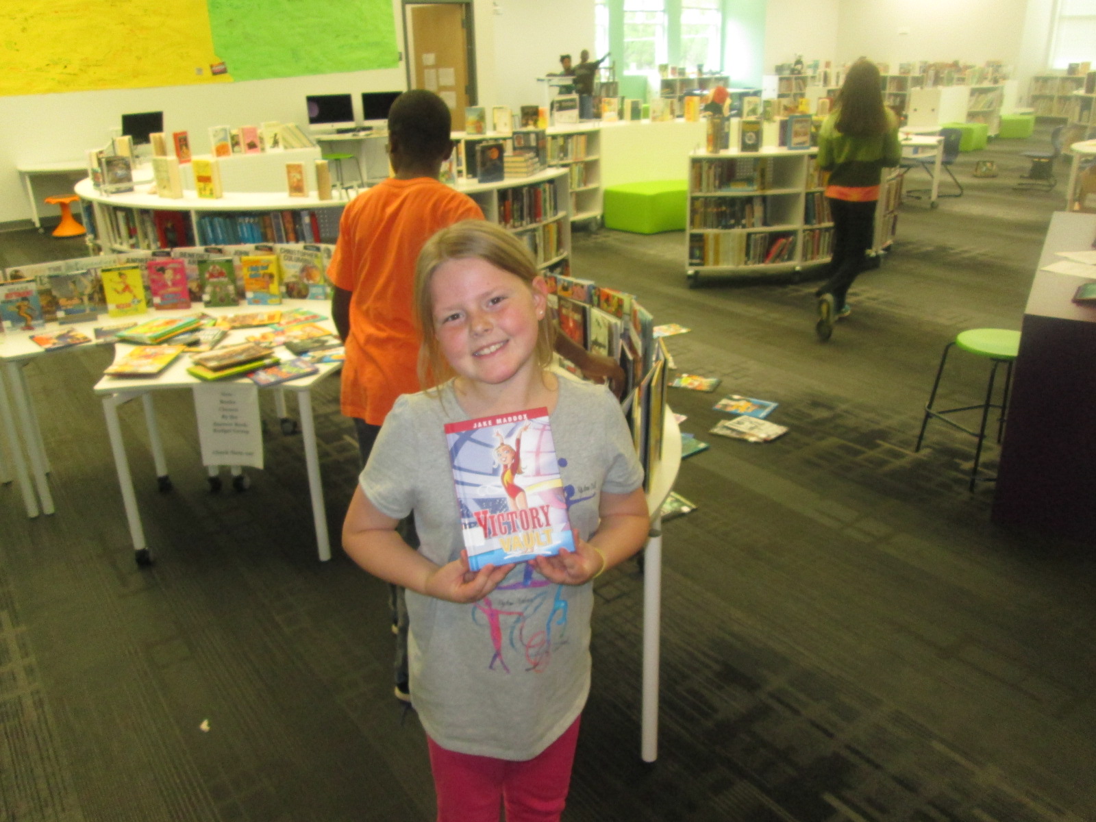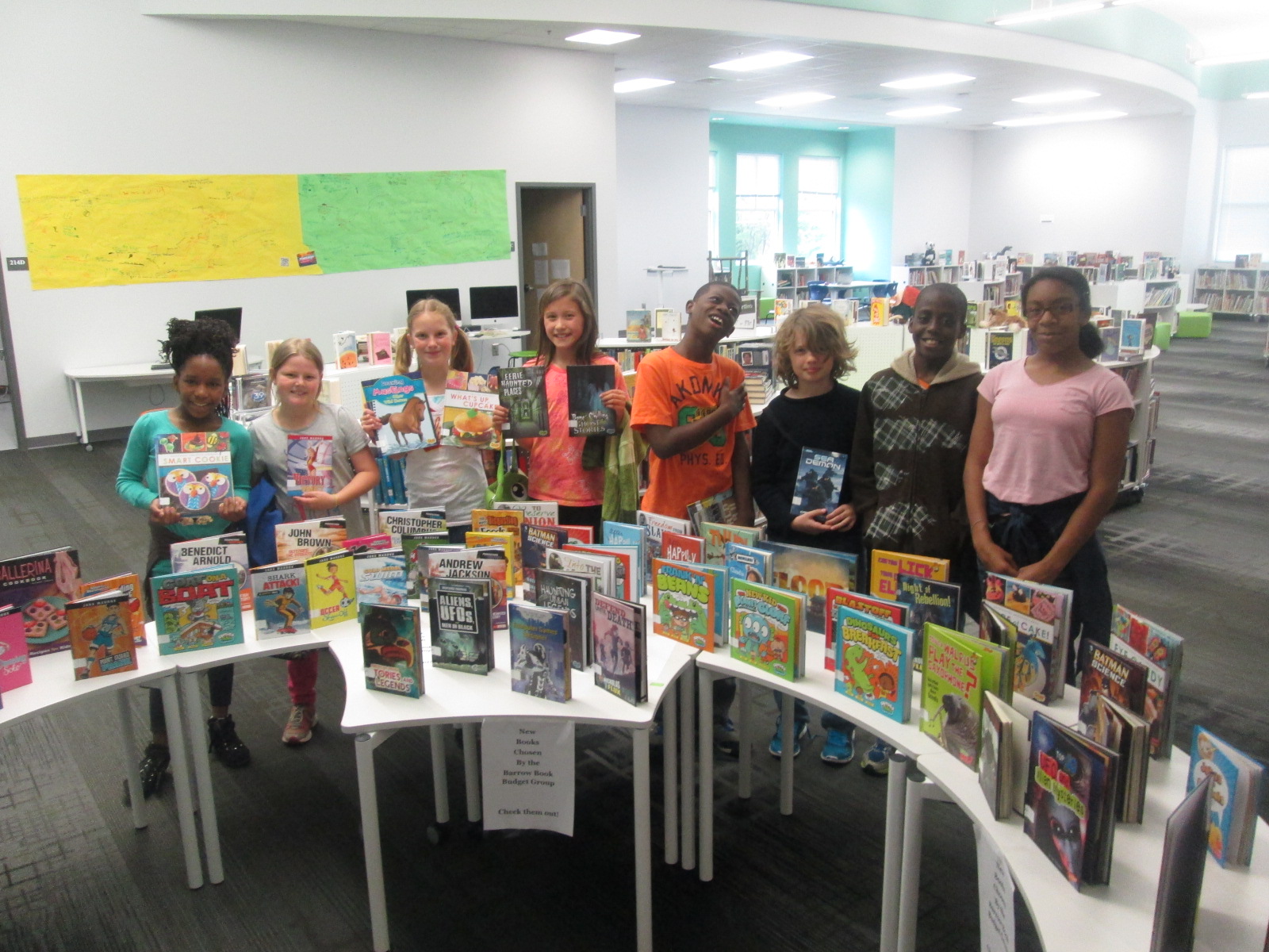 I immediately sent a note down to Adaline so that she could come up and see how Capstone had listened to her ideas and given us something completely based upon her request. She was all smiles. I also loved that her grandmother was here to celebrate the moment with her. Even though she might not want the attention, I think it’s important to celebrate this moment. Now her efforts will be on display as our student book budget books arrive. These signs will be a part of our student book budget display.