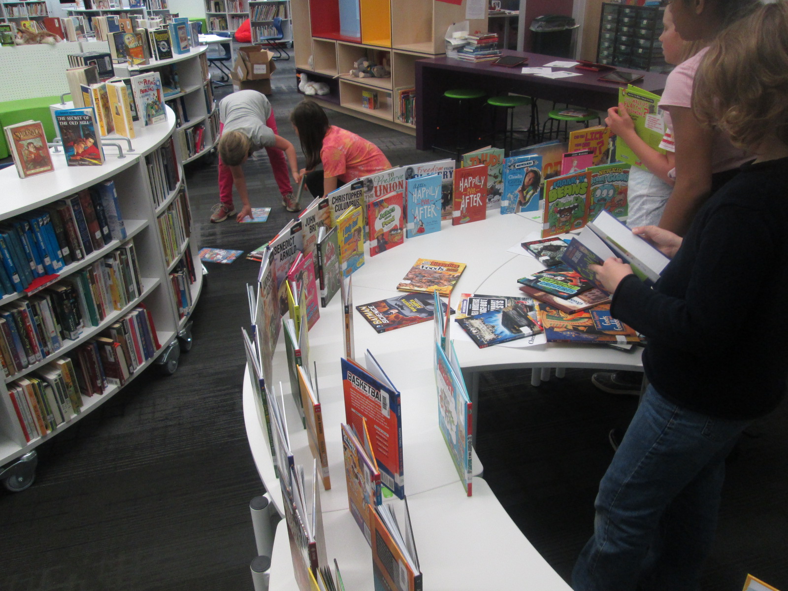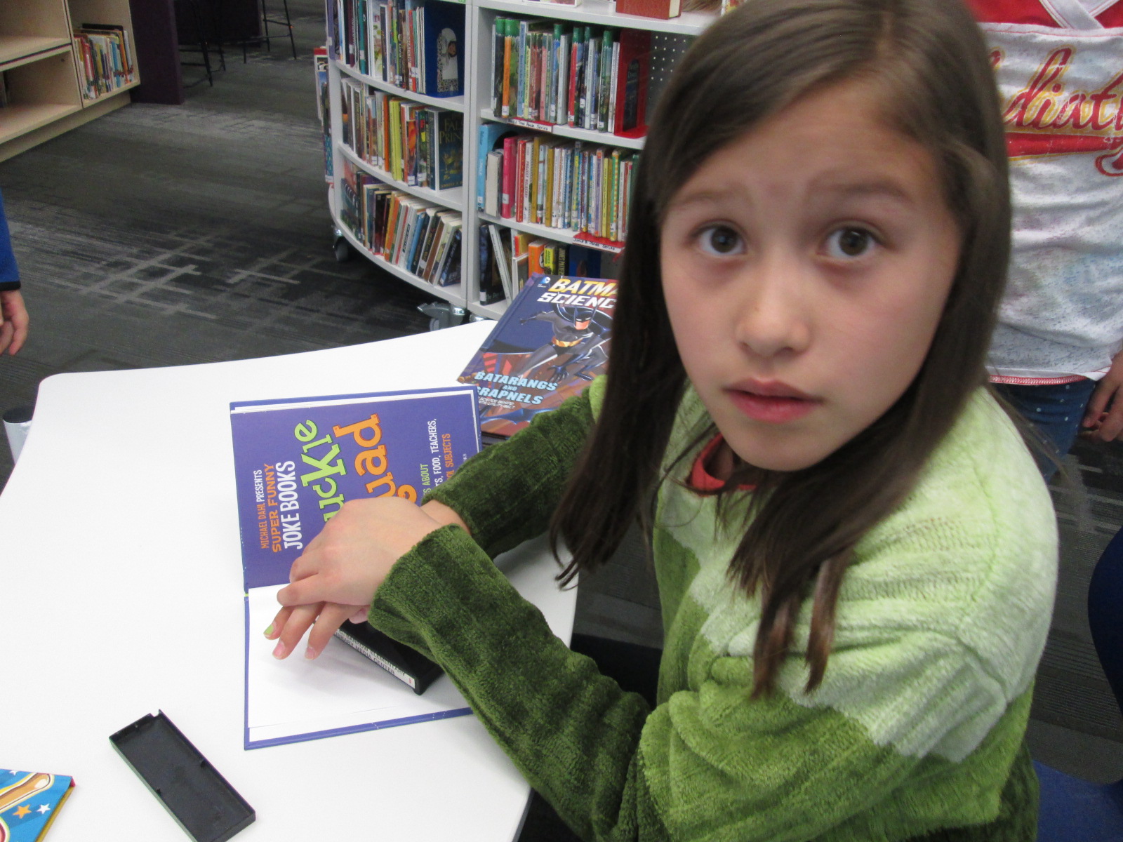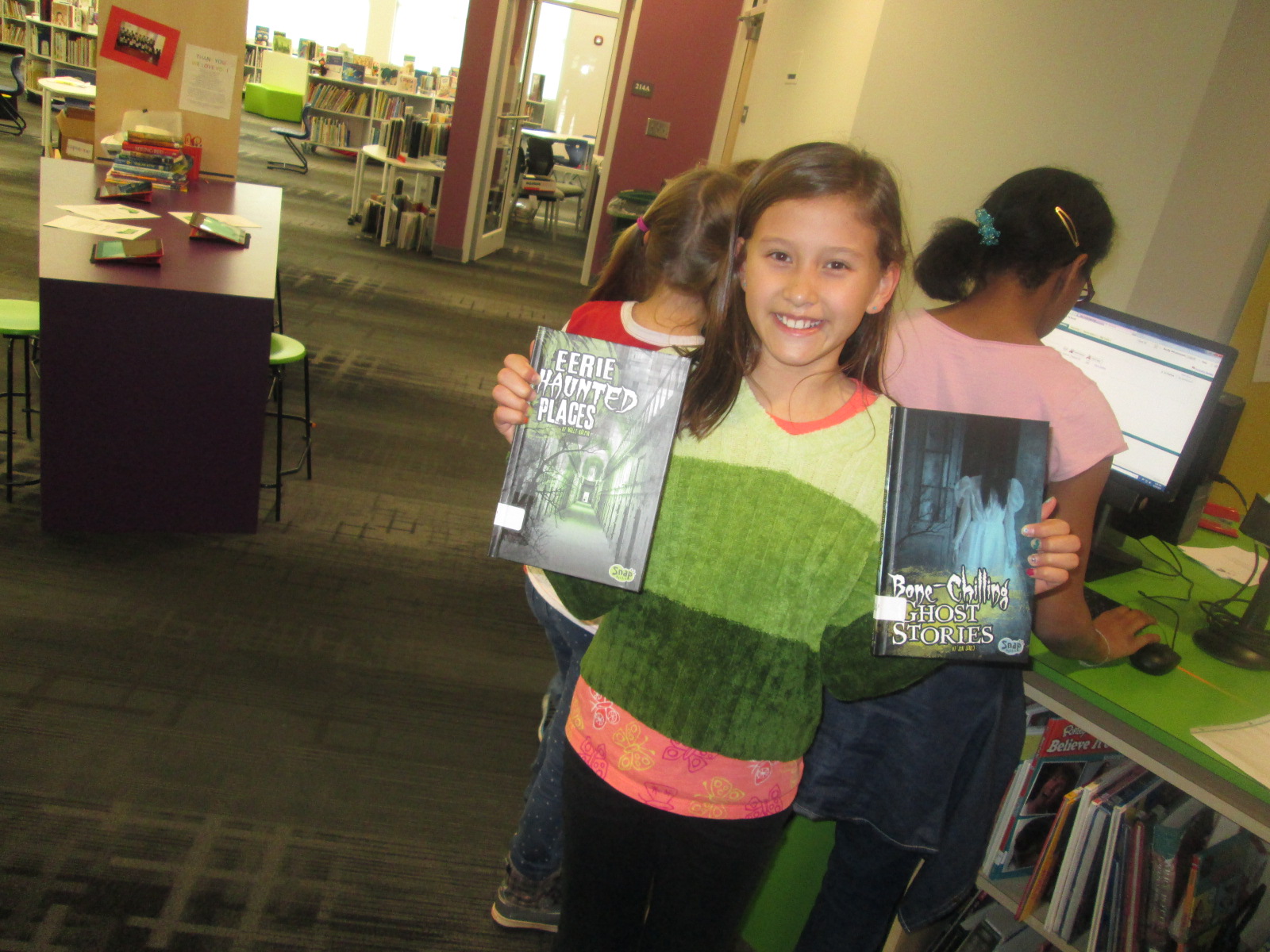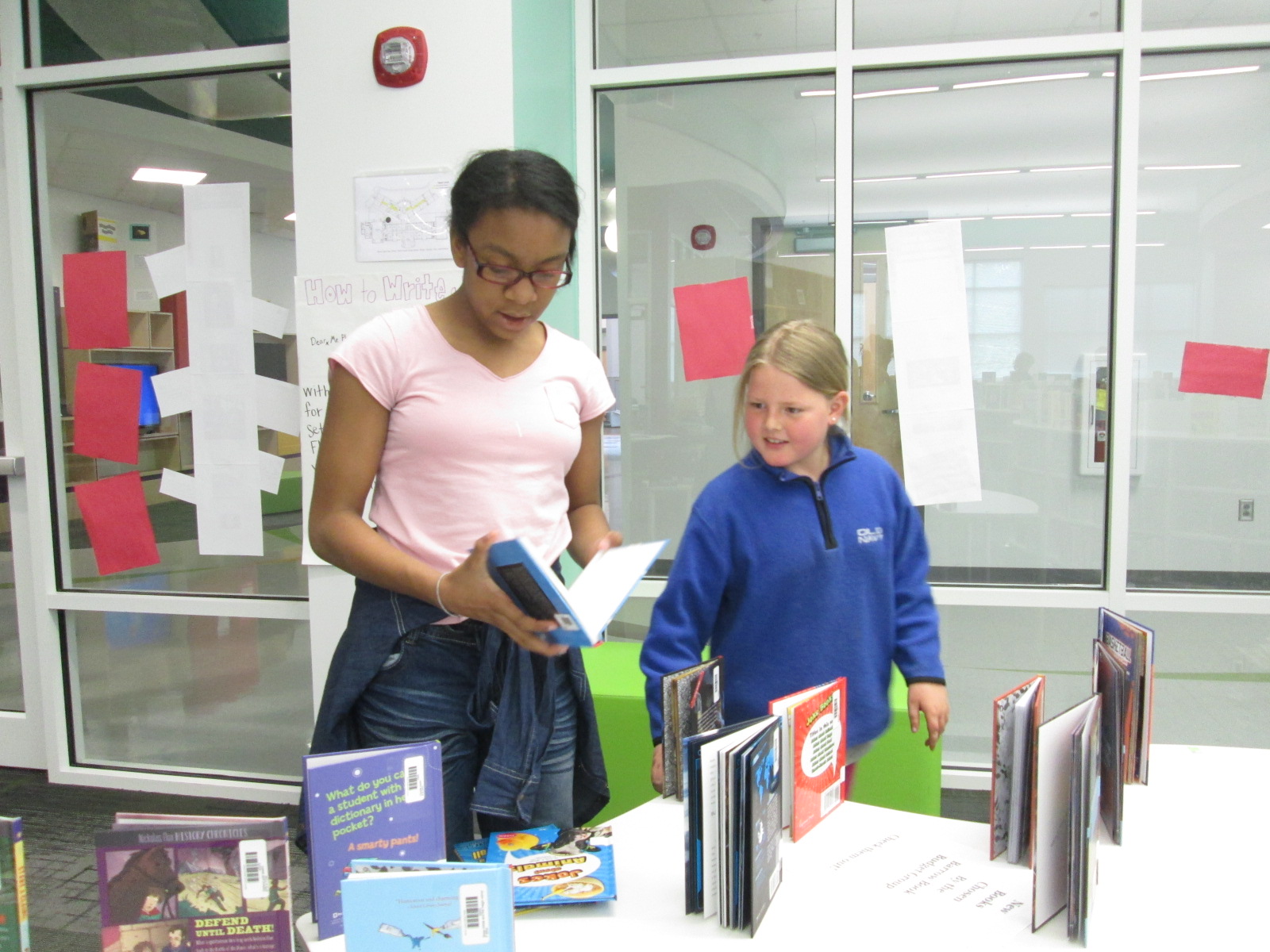 I immediately sent a note down to Adaline so that she could come up and see how Capstone had listened to her ideas and given us something completely based upon her request. She was all smiles. I also loved that her grandmother was here to celebrate the moment with her. Even though she might not want the attention, I think it’s important to celebrate this moment. Now her efforts will be on display as our student book budget books arrive. These signs will be a part of our student book budget display.