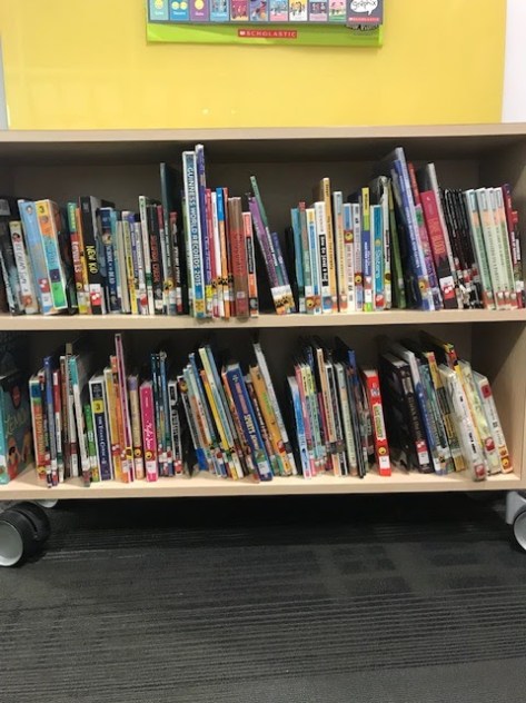 This isn’t magically fixing our problems. When you have up to 20 kids coming to check out books at the same time while also teaching a class, things aren’t going to be perfectly smooth. However, I’m trying to not compromise student access to books just because of some logistics we can work out. Within a week of rolling this out, I’ve already seen students working together to stand up books on the return cart. They even use language directly from the video when explaining to the other student what to do. Lining those books up is super helpful, because with limited shelving help at the moment, I need students to be able to see those books on the return carts so they can pull choices from there too.