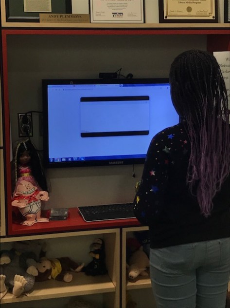 Since students in grades 2-5 visit the library alone in addition to their library lessons, I focused on those students to learn how to do self check in and self check out. I setup a computer dedicated to check in and a computer dedicated to check out. I also recorded sounds such as “stop. check screen.” and “hold shelf please” to prompt students to look to see if there was an error message on the screen or to put the book aside for the next student.