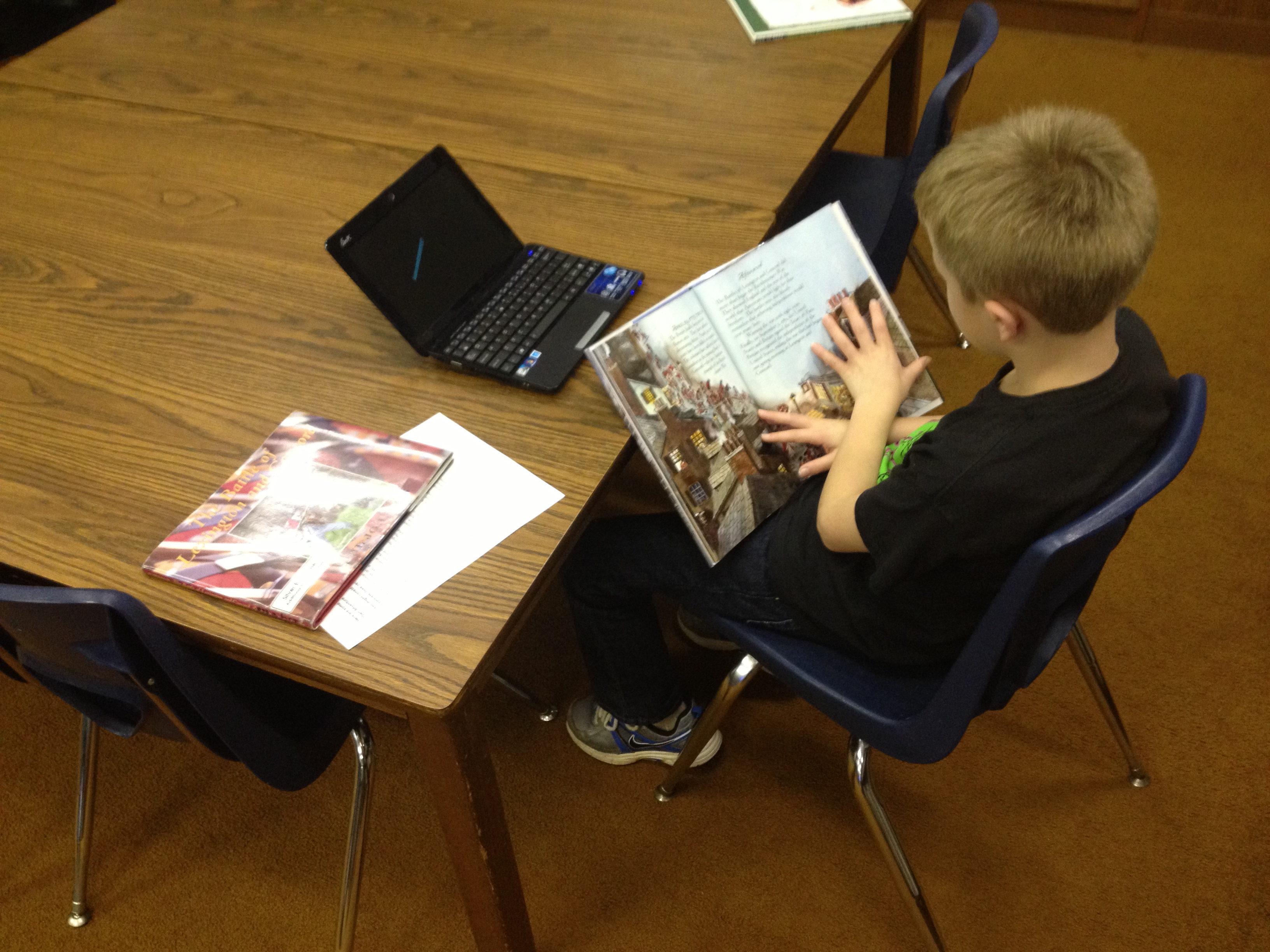 Second grade had already worked with me on writing book reviews for their blogs, so Caitlin Ramseyer, 2nd grade teacher, decided to incorporate Chatterpix into this mix. Her students each chose a book, read the book, and used an index card to write a script that they could finish reading in less than 30 seconds.