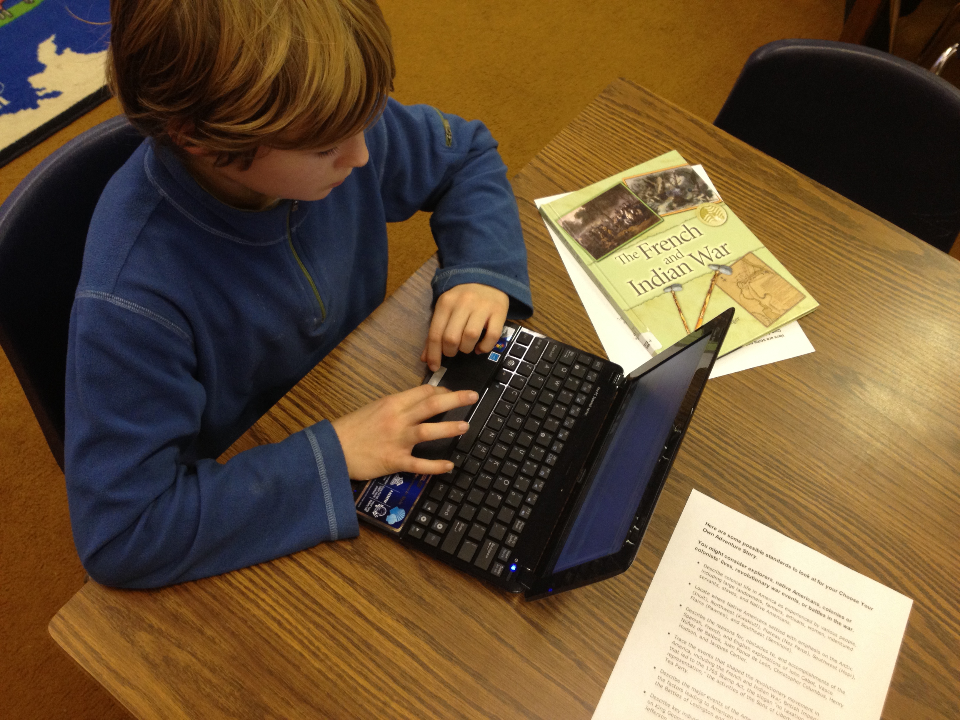 Today, they came to the library so that Caitlin and I could work with them on using the iPads. Students brought their index cards and books with them. First, we watched this video.