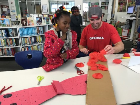 September has come to an end and our 1st month of makerspace is complete. We hold an open makerspace every Tuesday and Thursday. Students choose to come to makerspace as an alternative to their recess time. We weave makerspace projects into the curriculum throughout the year, but this Tuesday/Thursday time is more open-ended. Our makerspace is also a collaboration with Gretchen Thomas and her students at the University of Georgia. This class evolved organically out of some very small collaborations a few years ago. Now, 8 UGA students visit our library every Tuesday & Thursday from 10:45-12:15. Students sign up with their teacher via a Google Doc after watching an introductory video to the month’s topic. Each teacher is allotted a certain number of spots. If they don’t use all their spots, another teacher can claim them. We have a staggered schedule: 3rd grade 10:45-11:15, 4th grade 11:00-11:30, 1st grade 11:20-11:50, and 5th grade 11:45-12:15.