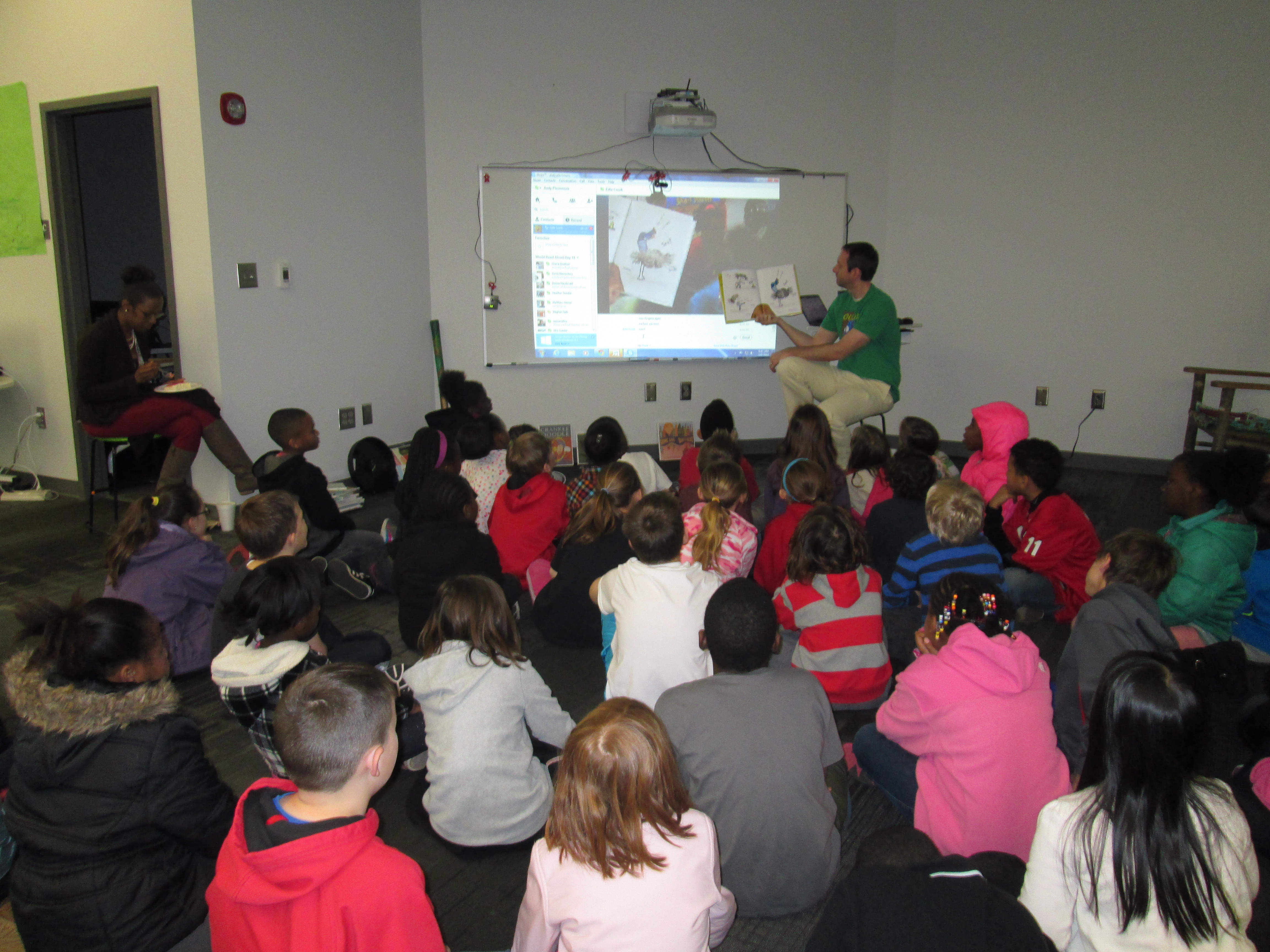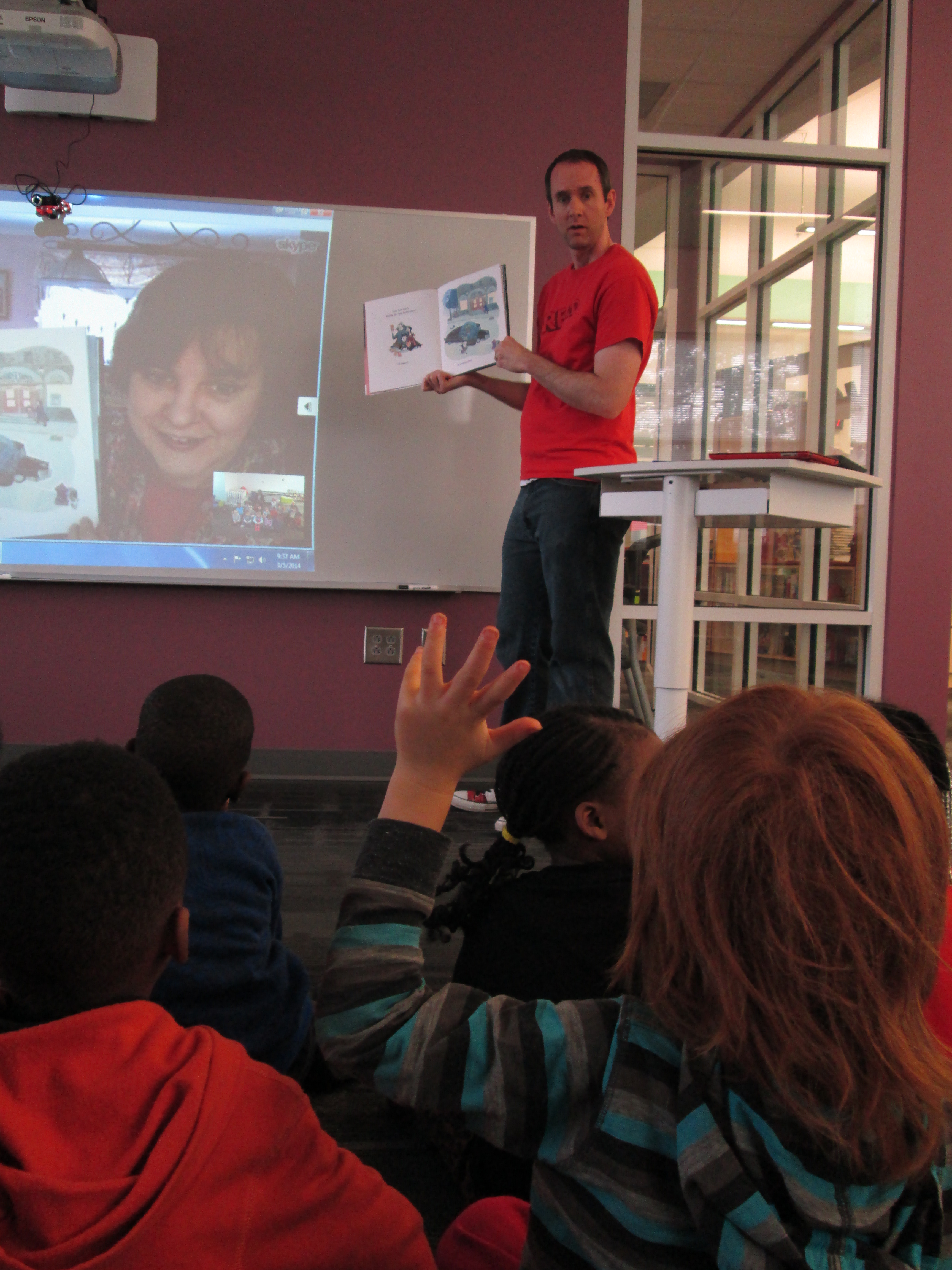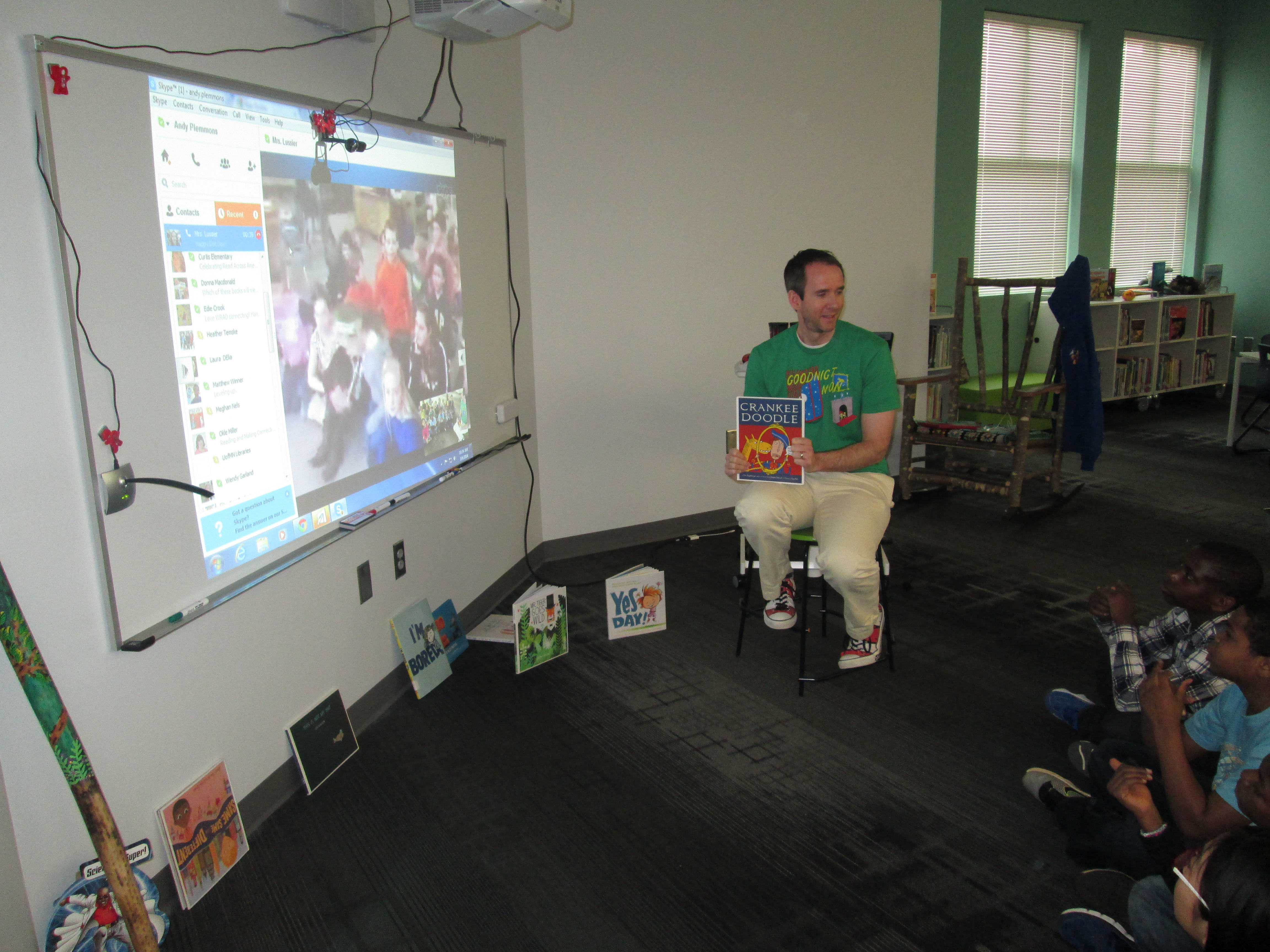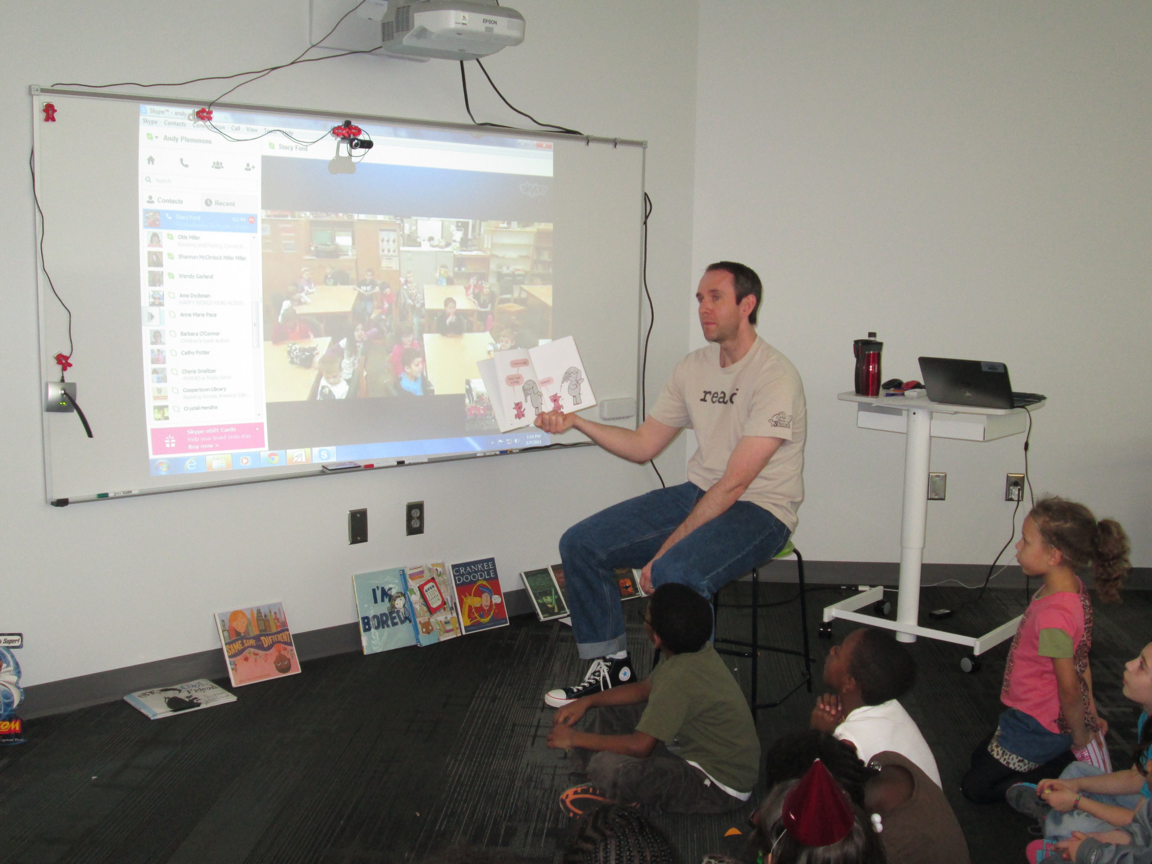 This year during Read Across America and World Read Aloud Day, we held 36 skype sessions connecting with 50 locations, 22 states, 2 countries, and 9 authors. I received a whole pack of thank you letters from Caitlin Ramseyer’s class at our school. I put all of those letters up on the windows of the library for everyone to see and to validate the students’ hard work in writing the letters.