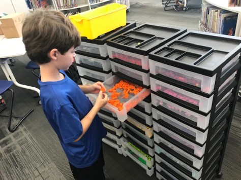 September has come to an end and our 1st month of makerspace is complete. We hold an open makerspace every Tuesday and Thursday. Students choose to come to makerspace as an alternative to their recess time. We weave makerspace projects into the curriculum throughout the year, but this Tuesday/Thursday time is more open-ended. Our makerspace is also a collaboration with Gretchen Thomas and her students at the University of Georgia. This class evolved organically out of some very small collaborations a few years ago. Now, 8 UGA students visit our library every Tuesday & Thursday from 10:45-12:15. Students sign up with their teacher via a Google Doc after watching an introductory video to the month’s topic. Each teacher is allotted a certain number of spots. If they don’t use all their spots, another teacher can claim them. We have a staggered schedule: 3rd grade 10:45-11:15, 4th grade 11:00-11:30, 1st grade 11:20-11:50, and 5th grade 11:45-12:15.